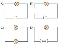 Özdeş devre elemanlarıyla kurularak çalıştırılan aşağıdaki devrelerden hangisinde bulunan ampul ya da ampuller diğerlerinden daha parlak ışık verir?